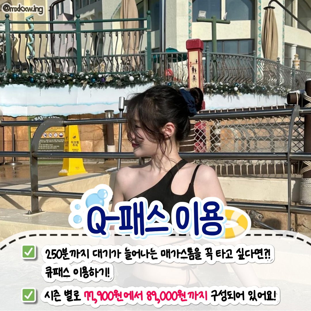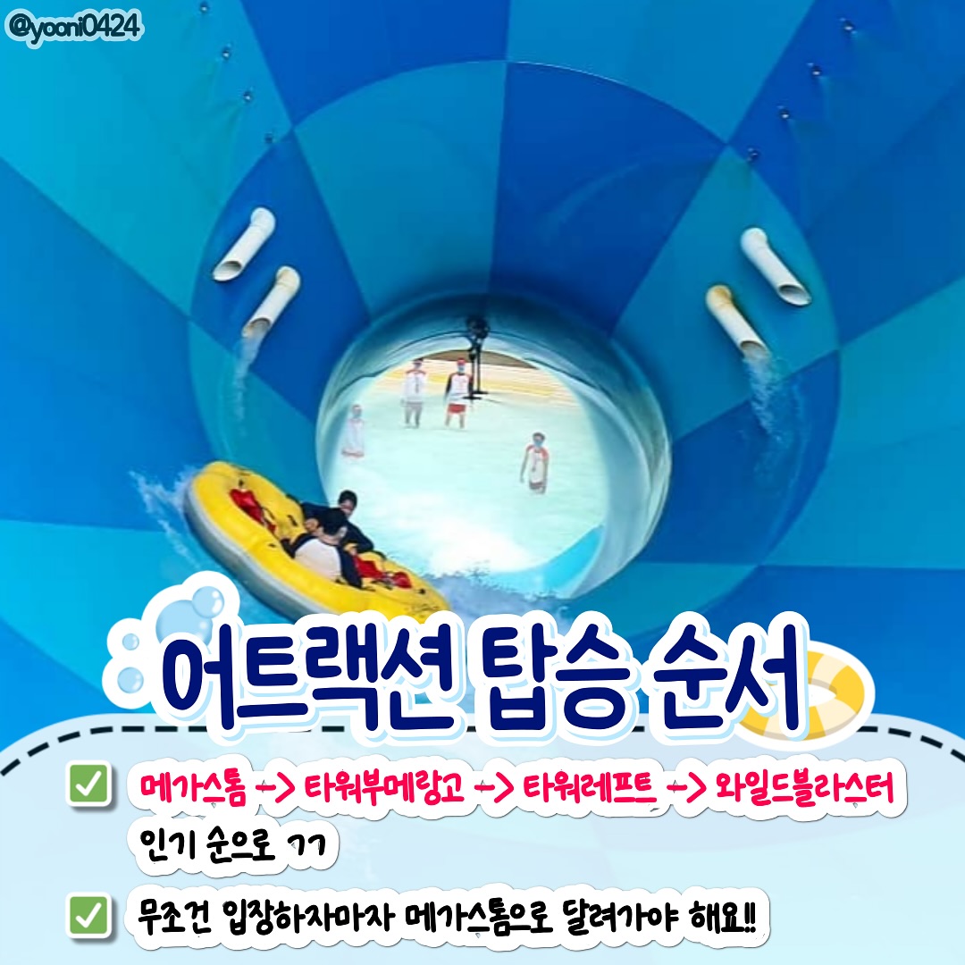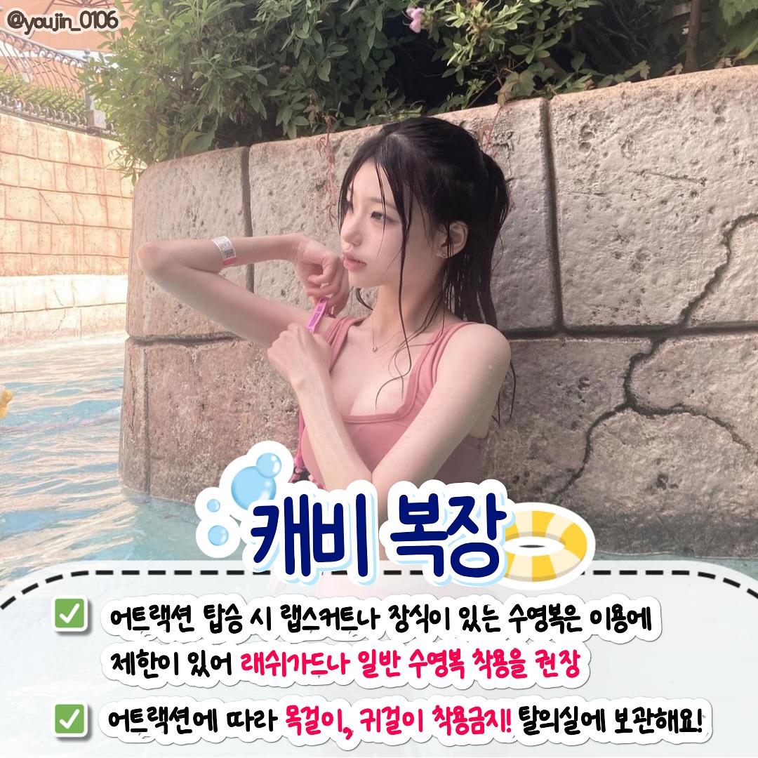 ✅어트랙션 탑승 시 랩스커트나 장식이 있는 수영복은 이용에 제한이 있어 래쉬가드나 일반 수영복 착용을 권장