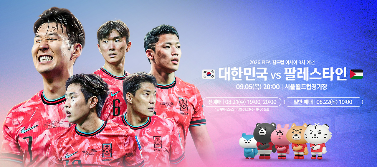 - 1차전: 대한민국 VS 팔레스타인 (2024년 9월 5일 목요일 오후 8시)