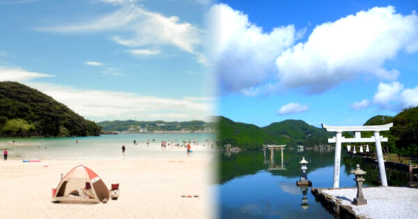 일본의 물가 100선 가운데 하나로도 꼽힌 미우다 해수욕장은 에메랄드빛 맑은 물빛을 자랑합니다. 주변에 캠프장과 펜션이 있어서 더욱 찾는 사람이 많은데요 다만 우리나라 해수욕장처럼 식당, 카페 등의 시설이 많지않아 피크닉을 위한 간식이 필요하다면 미리 준비해 가시는 것이 좋습니다.