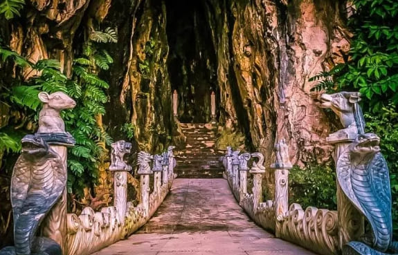 다낭 오행산에는 6개의 동굴과 사당, 불교사원과 탑 등 화려한 볼거리가 가득합니다. 산에서 내려다보는 전망도 훌륭하지만, 가파른 계단이 많아 습하고 더운 다낭 날씨에 조금은 힘들 수 있다는 것이 단점이죠. 다낭 오행산의 암푸동굴은 천국과 지옥을 테마로 조성된 동굴입니다.