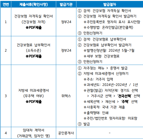 ① 공고월 3개월 전(24년 5월~7월) 건강보험료 납부확인서 확인