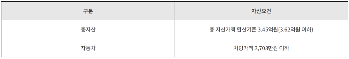 – 소득수준과 자산보유액에 따라서 신청자격에 제약이 있습니다.