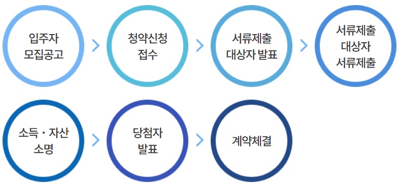 – 도시근로자 가구당 월평균소득의 50% 이하인 무주택 구성원에게 먼저 공급하고 남은 주택이 있는 경우 70% 이하인 자에게 공급