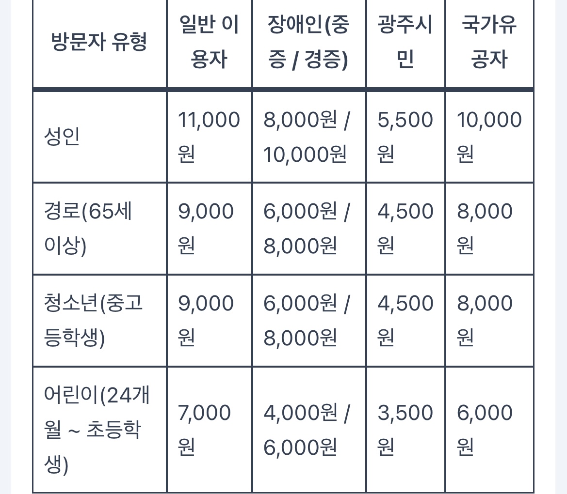 광주시민: 평일 50%, 주말/공휴일 30% 할인