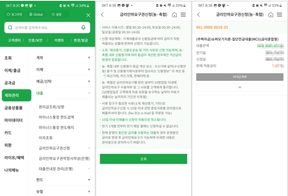 농협은행은 신청 절차는 상대적으로 간단하지만, 대출 종류에 따라 금리인하요구권이 적용되지 않는 경우가 많습니다. 예를 들어, 주택담보대출의 경우 일부 상품은 금리인하요구권 대상에서 제외될 수 있습니다. 이러한 경우는 신청 전에 확인이 필요합니다.