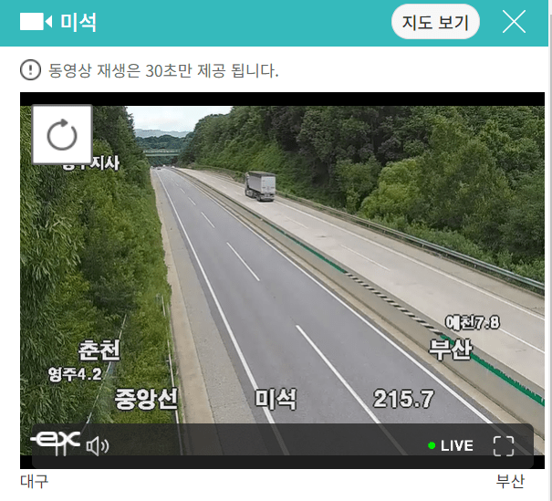 날씨나 네트워크 상황에 따라 영상 품질이 떨어질 수 있습니다. 이럴 때는 다른 근처 CCTV를 확인하거나 텍스트 기반의 교통정보를 참고하세요.