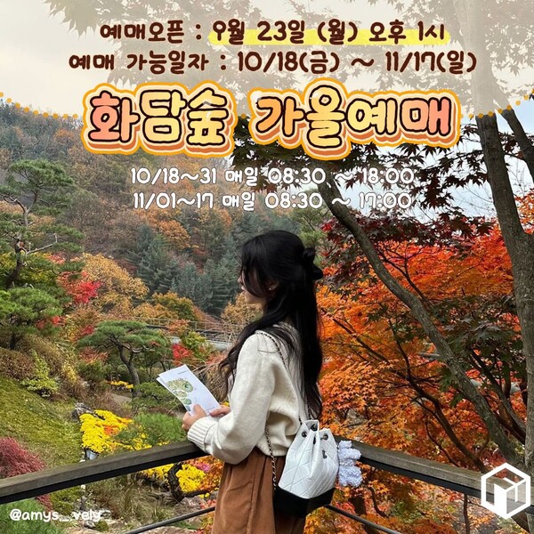 2024 화담숲 가을 예매 오픈 일정은 9월 23일 월요일 오후 1시입니다.