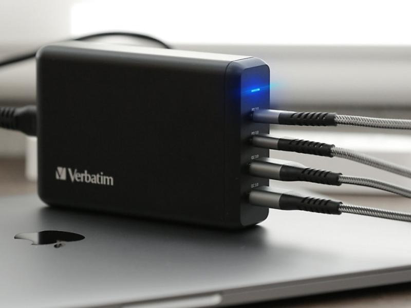 버바팀의 멀티충전기는 최대 156W의 출력을 지원하 는 제품이다. PD 충전을 지원하는 C타입 포트 두 개 에 QC 3.0의 18W 포트 두 개까지 총 네 개의 포트 를 갖추고 있다. 2포트 동시 사용 시 최대 120W의 출력으로, 노트북을 동시에 두 대 충전할 수 있다. PP S 20V 5A를 지원해, PPs 초고속 충전도 완벽하게 지원한다. QC 2.0과 QC 3.0을 모두 지원해, 미지원 충전기 대비 35분 만에 최대 80%의 더 빠른 고속충 전까지 지원한다. 본 제품의 공식몰 판매가는 55,900 원이다.
