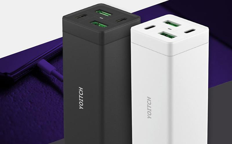 요이치 마빈 울트라 65W 멀티충전기는 네 개의 포트 를 갖추고 있다. 길쭉하고 네모난 특이한 모양의 바디 디자인을 가진 충전기로, 최대 출력은 83W를 지원한 다. 불연성 PC 소재로 제작해 열에 강하고 불에 타지 않아 안전하게 사용할 수 있으며, 별도의 어댑터 없이 AC 케이블을 연결하면 바로 사용할 수 있어 변압기 가 없어도 활용하기 편하다. 요이치 공식몰에서 개당 34,200원의 판매가로 판매 중이다.