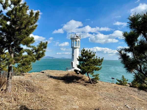 찾아가는 길도 쉽지 않아 숨은 여행지 중 한 곳인 이곳은, 적당한 위치에 차를 주차한 후 굴전해안의 고니도래지를 따라 숲길을 헤치며 방문해야 하는데요. 해안길을 따라 쭉 가다 보면 시원스러운 청량한 바다에 우뚝 선 흰 등대를 만날 수 있습니다.