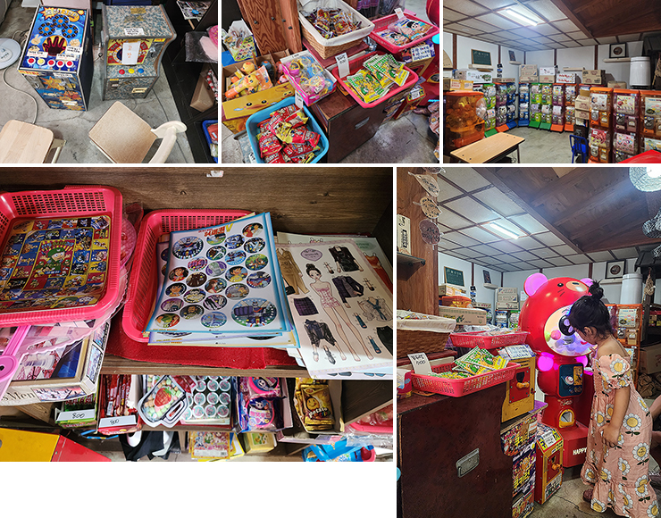 그에 부흥하여 특정 건물, 특정 점포는 추억 팔이 상품이 진열되어 있기도 하다.