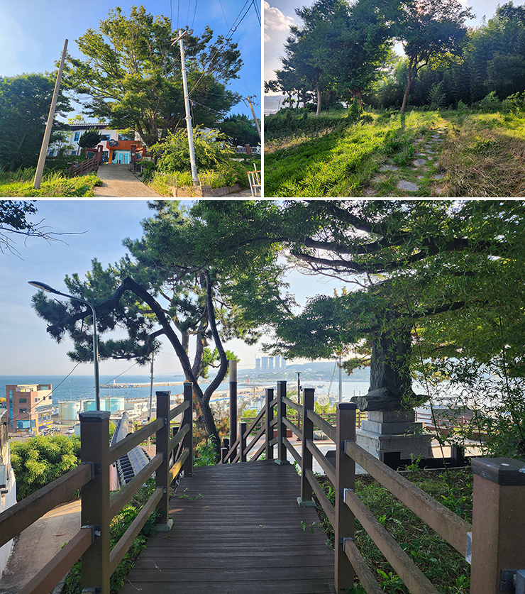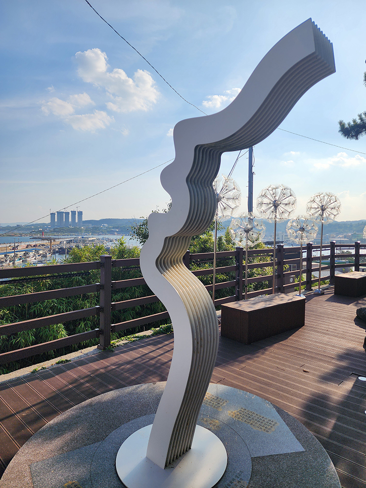 포항 구룡포 과메기 문화관까지 올라갔다면 주변으로는 온통 자그마한 가옥이 즐비한 주택가이기에 일반적인 여행가의 입장에선 더 관심을 둘 이유가 없을지도. 다시 아래로 내려오거나 구룡포 생활문화센터 아래로 데크를 따라 내려오면 이와 같은 조형물이 보이고 바다와 구룡포항을 볼 수 있다.