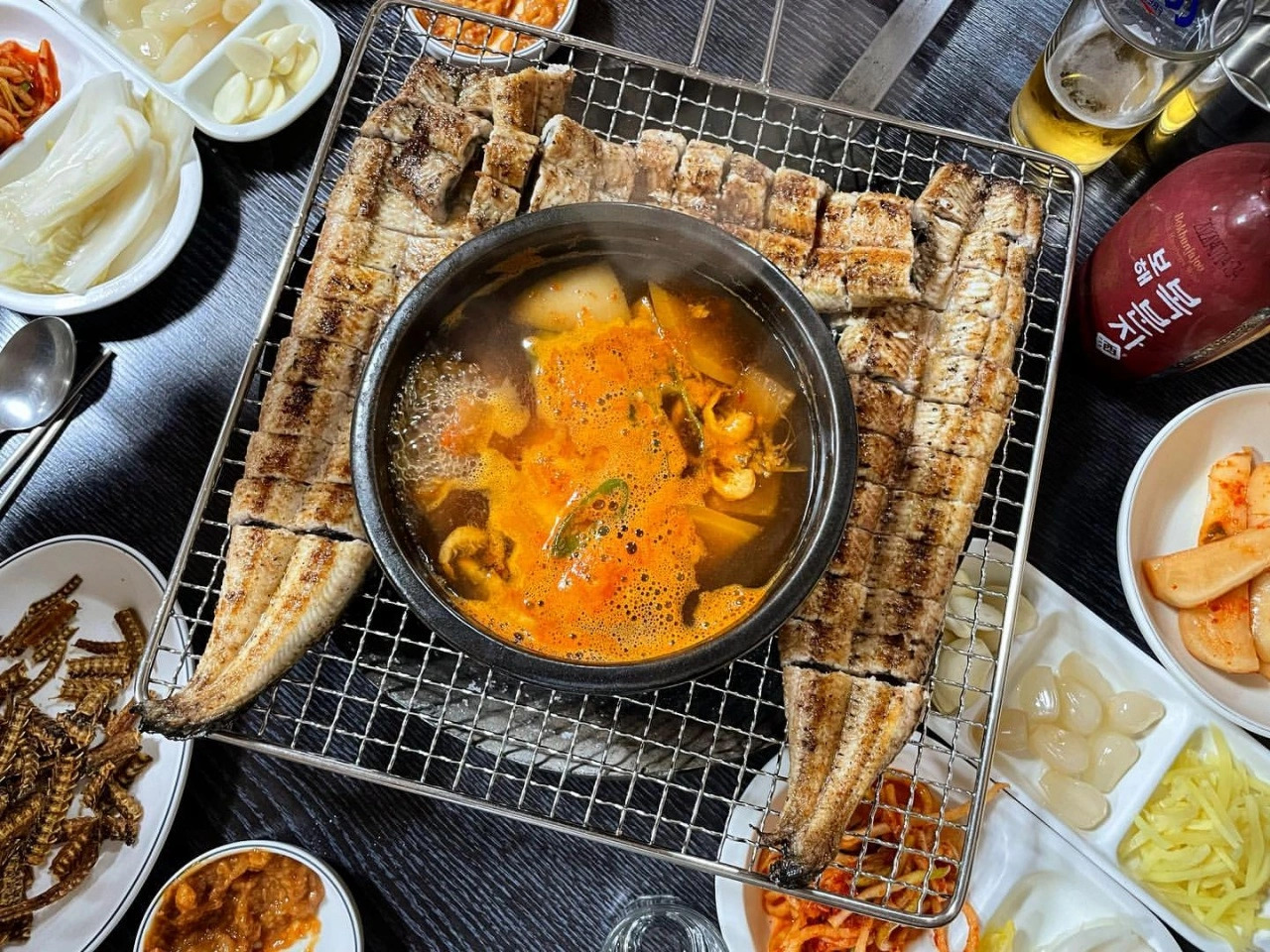 삼각지역 인근에 위치한 장어요리 맛집. 주택을 개조해 마치 시골집에 놀러온 듯한 외관이지만 실내는 모던한 감성으로 영리하게 꾸며 데이트를 하기에도 적절한 분위기다. 이곳은 통영에서 직배송받은 바다장어를 사용해 쪽파, 양파, 버섯, 감자 등의 채소와 함께 돌판에 제공하는 것이 특징. 기름기가 쏙 빠져 담백한 맛의 장어는 익은 채소들과 곁들여 즐기기 좋다. 복분자 하이볼을 곁들여 분위기를 내는 것도 추천한다.