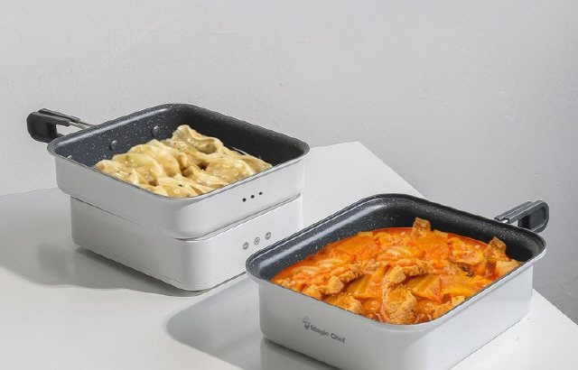매직쉐프의 인덕션은 인덕션과 냄비, 프라이팬이 모두 갖춰진 올인원 제품이다. 휴대할 경우를 감안해 조리기 구가 인덕션 안에 들어갈 수 있는 구조로 만들어져, 휴 대와 수납이 용이하다. 냄비의 용량은 1.5리터로 넉넉 하며, 프라이팬은 냄비 뚜껑으로도 활용할 수 있다. 약 모드일 시에는 400W, 강모드일 때는 800W의 출력으 로 동작한다. 본 제품의 온라인 최저가는 119,000원으 로 확인된다.