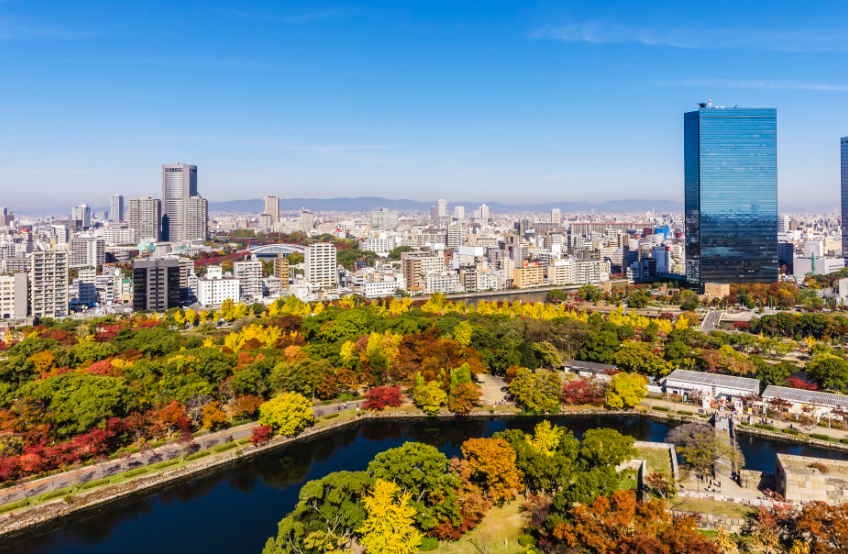 오사카성: 오사카성 주변 넓은 공원이 울긋불긋 단풍으로 물들면 도심 내에서 아름다운 가을 경치를 감상할 수 있습니다.
