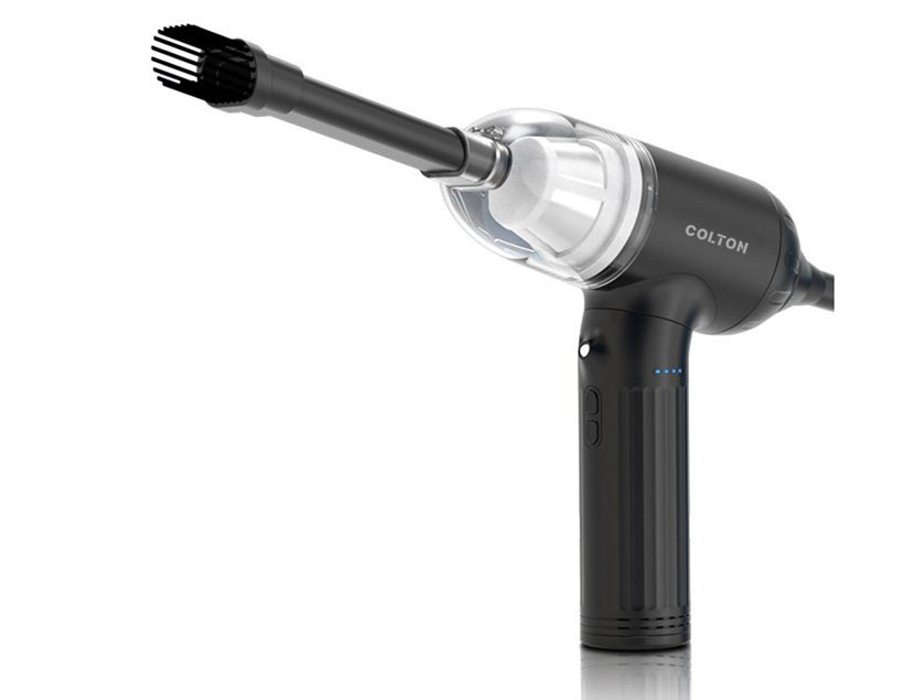 콜튼 멀티 에어건은 90,000RPM의 강력한 힘으로 먼 지를 흡입할 수 있도록 만들어진 제품이다. 2400mAh 용량의 배터리 세 개를 탑재하고 있어 완충 후 사용 시 에는 최장 30분 동안 청소를 할 수 있다. 물세척이 가능 한 H13 등급의 헤파필터를 적용했으며, 진공 브러시 노즐, 송풍 노즐, 송풍구 브러시 노즐, 에어매트 송풍 노즐 등 총 6개의 노즐을 본품과 함께 제공한다. 본 제 품의 공식몰 판매가는 89,000원이다.
