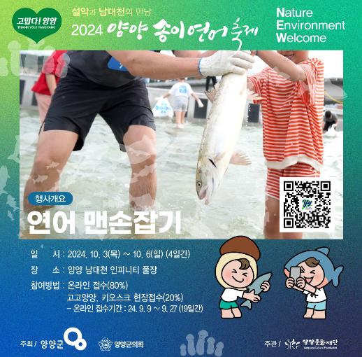 연어 맨손 잡기 체험: 양양 남대천에서 연어를 직접 잡는 스릴 넘치는 체험입니다.