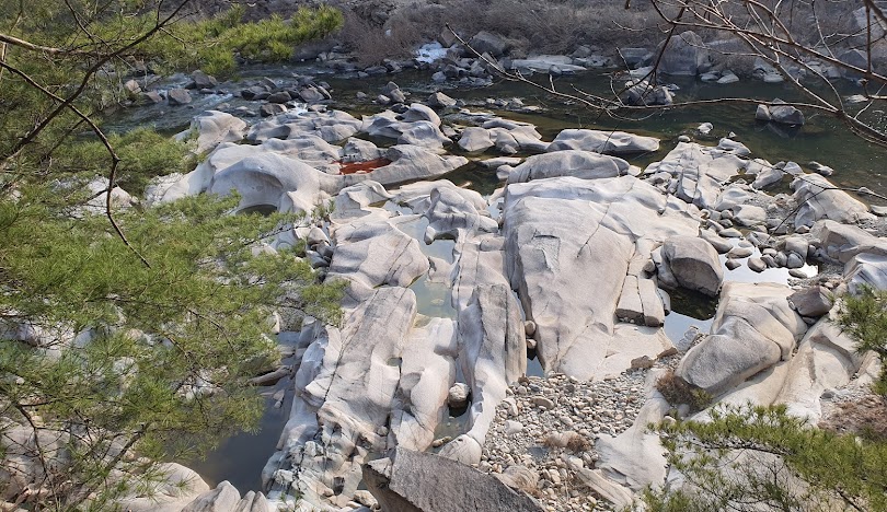 요선암 돌개구멍 같은 지형을 포트홀 지형이라고 하는데요. 포트홀 지형은 물살이 불규칙하고 거센 지형에서 나타나는 만큼, 빠르게 흐르는 물과 자갈들이 암석을 깎아내리며 만들어지게 됩니다.