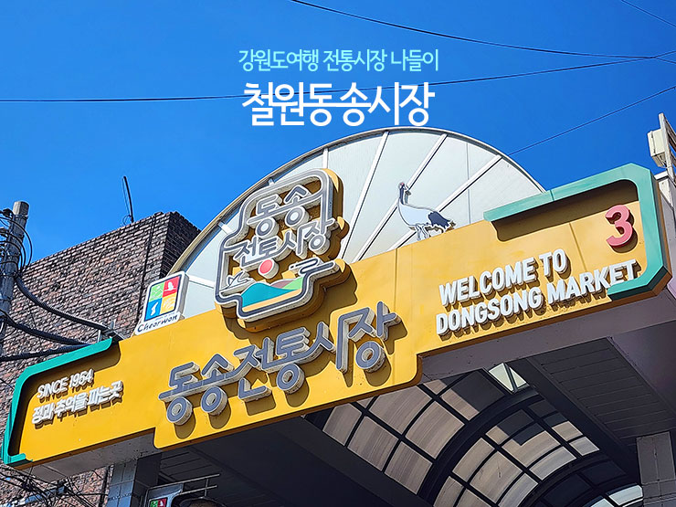 이번 강원도 여행을 통해 드디어 방문하게 된 철원동송시장의 노오란 간판이 예쁘다.