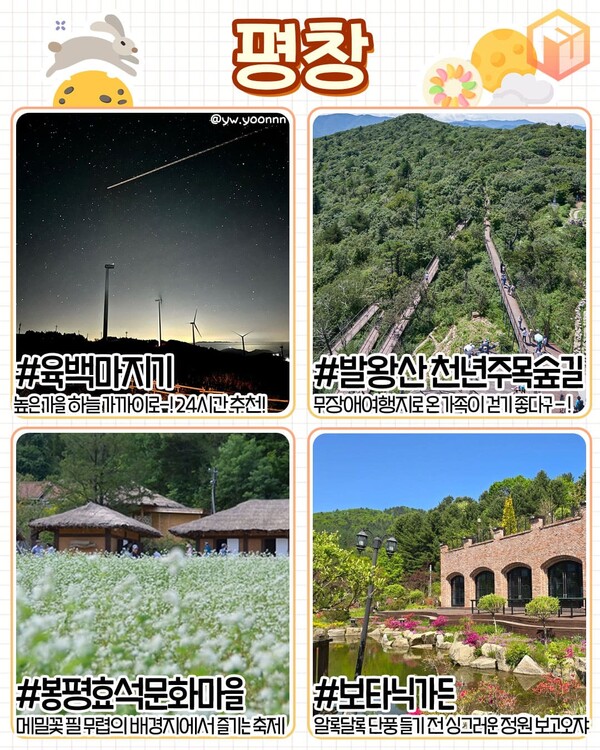 ✅ 육백마지기 ✅ 발왕산 천년주목숲길 ✅ 봉평효석문화마을(메밀꽃) ✅ 보타닉가든