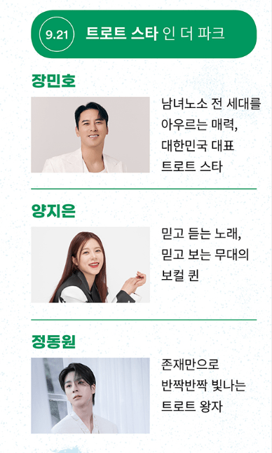 트로트 팬들을 위한 특별한 밤! 장민호, 양지은, 정동원이 무대를 빛내며, 어르신들에게는 추억을, 젊은 세대에게는 신나는 시간을 선사할 것입니다.