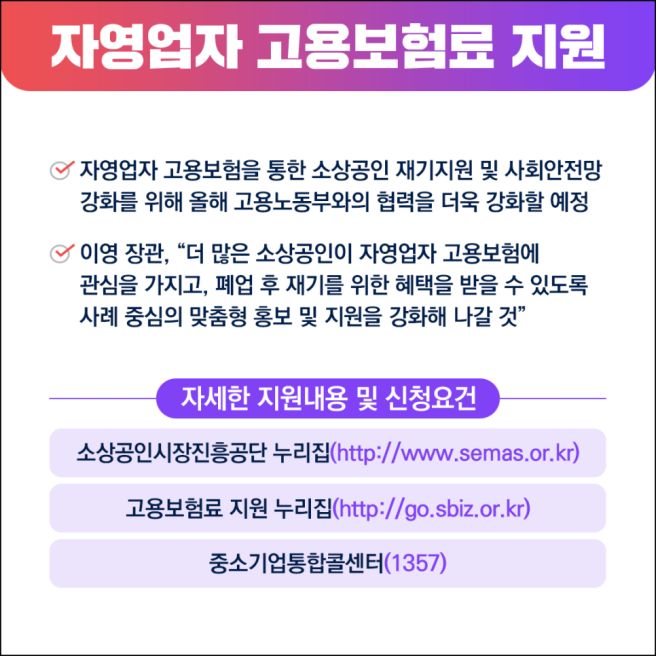 © 2024 자영업자 고용보험료 지원 사업 정보 제공. 근로복지공단 및 소상공인시장진흥공단에서 신청 가능.