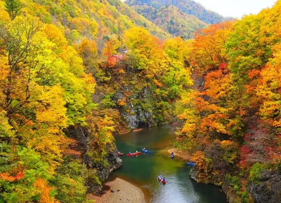 홋카이도에는 힐링여행코스인 온천이 많기도 합니다. 단풍으로 물든 산 속에서 여유롭게 온천과 함께 단풍놀이를 즐길 수 있는 것이죠. 홋카이도 내 산과 숲은 물론, 호수와 협곡 등 다채로운 자연에 단풍이 곁들여져 취향에 따른 단풍 풍경을 모두 볼 수 있어 추천하는 가을 단풍 해외여행지입니다.