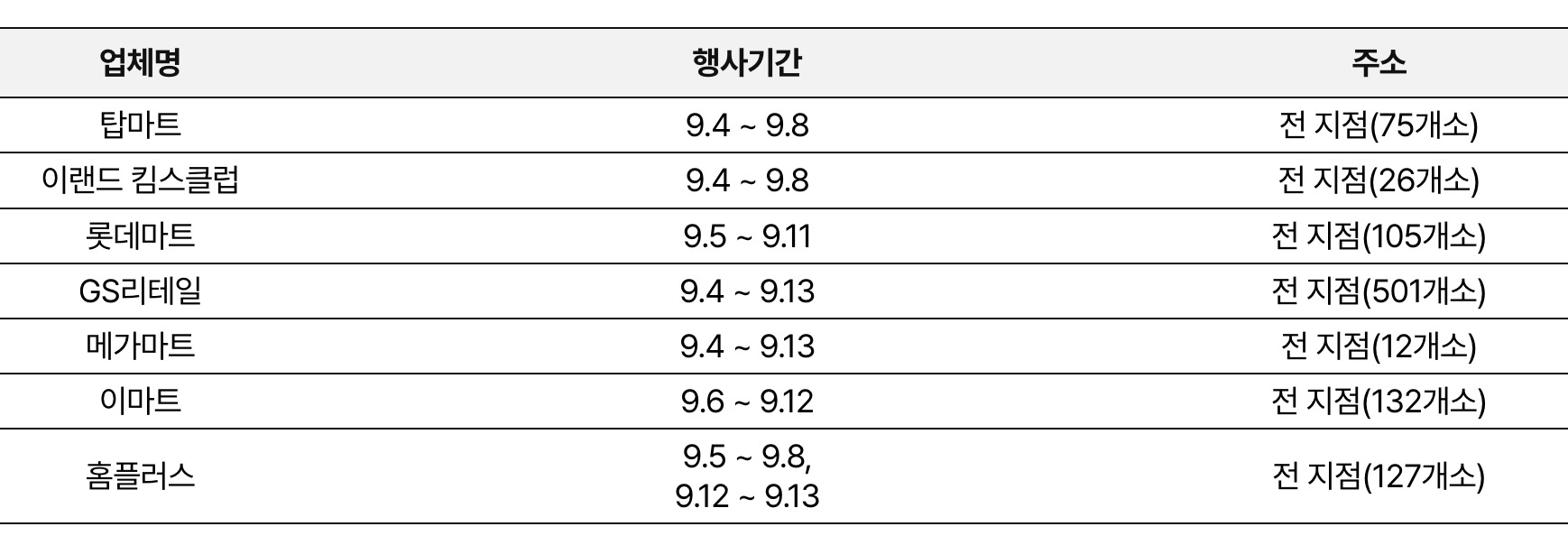 - 농협 하나로마트: 전국 지점에서 할인 행사 진행
