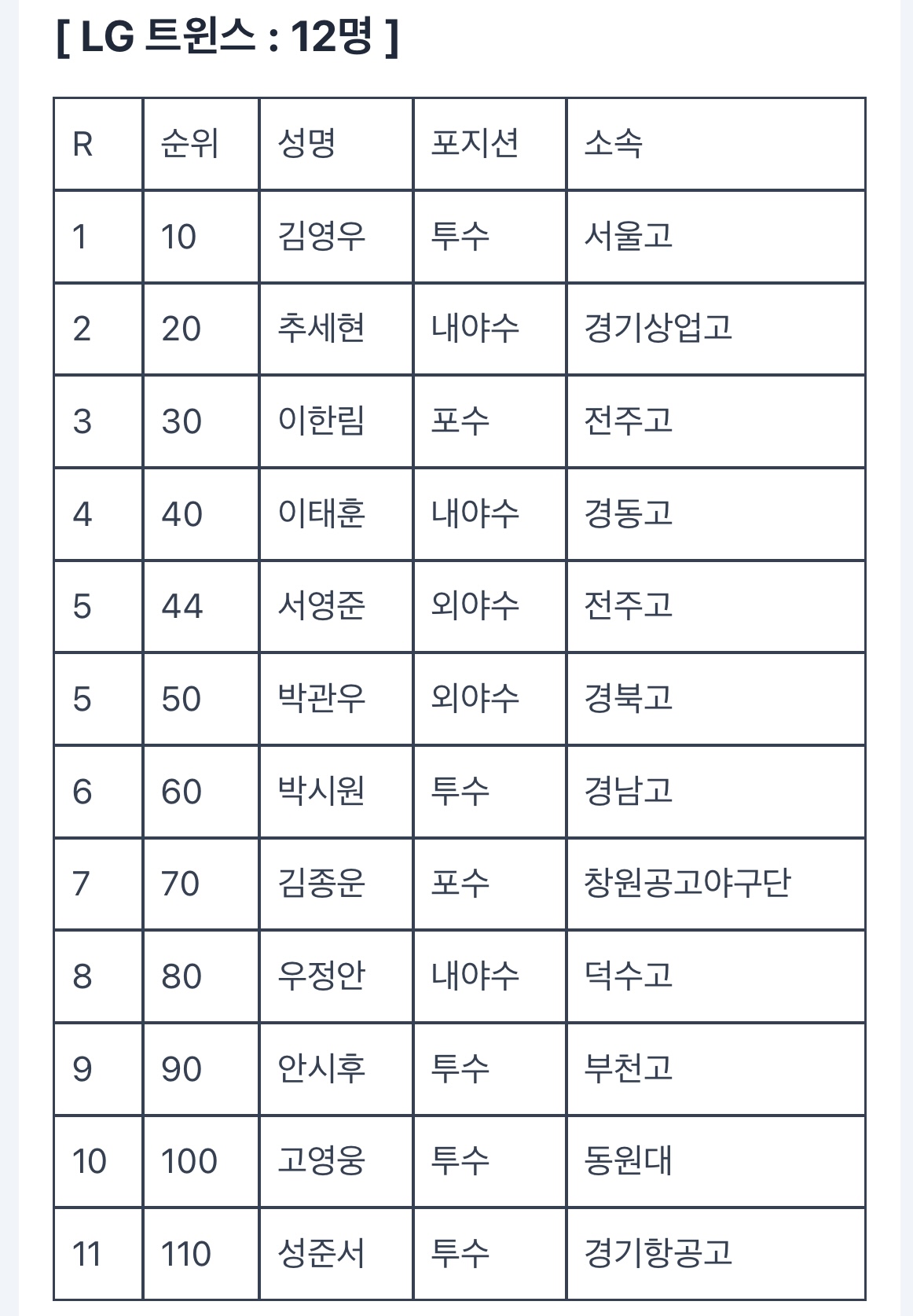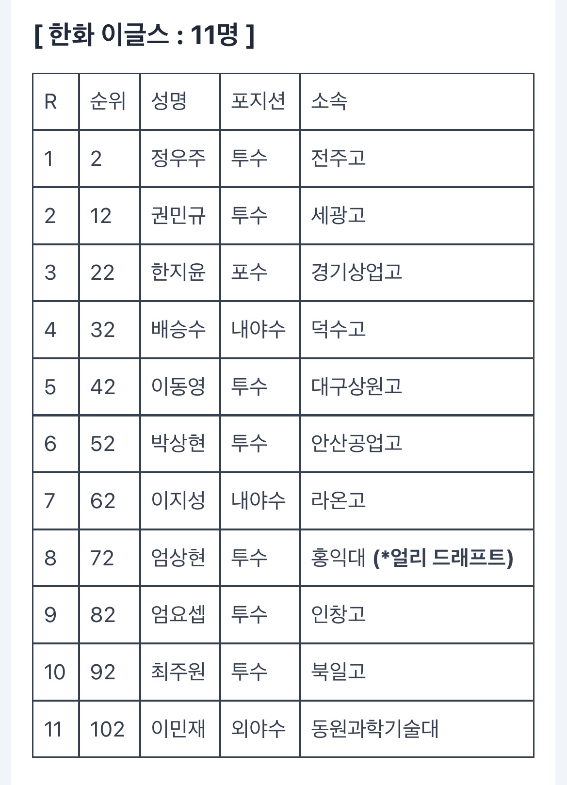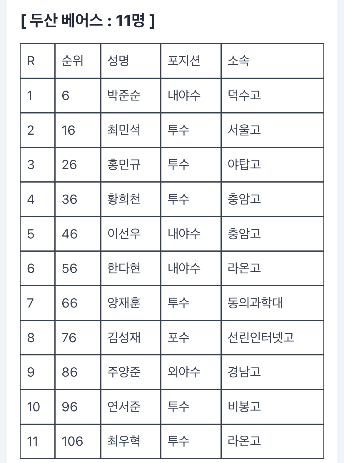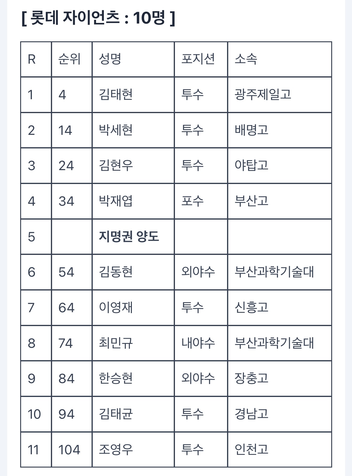 2025 KBO 신인드래프트 결과 1라운드부터 11라운드까지 지명