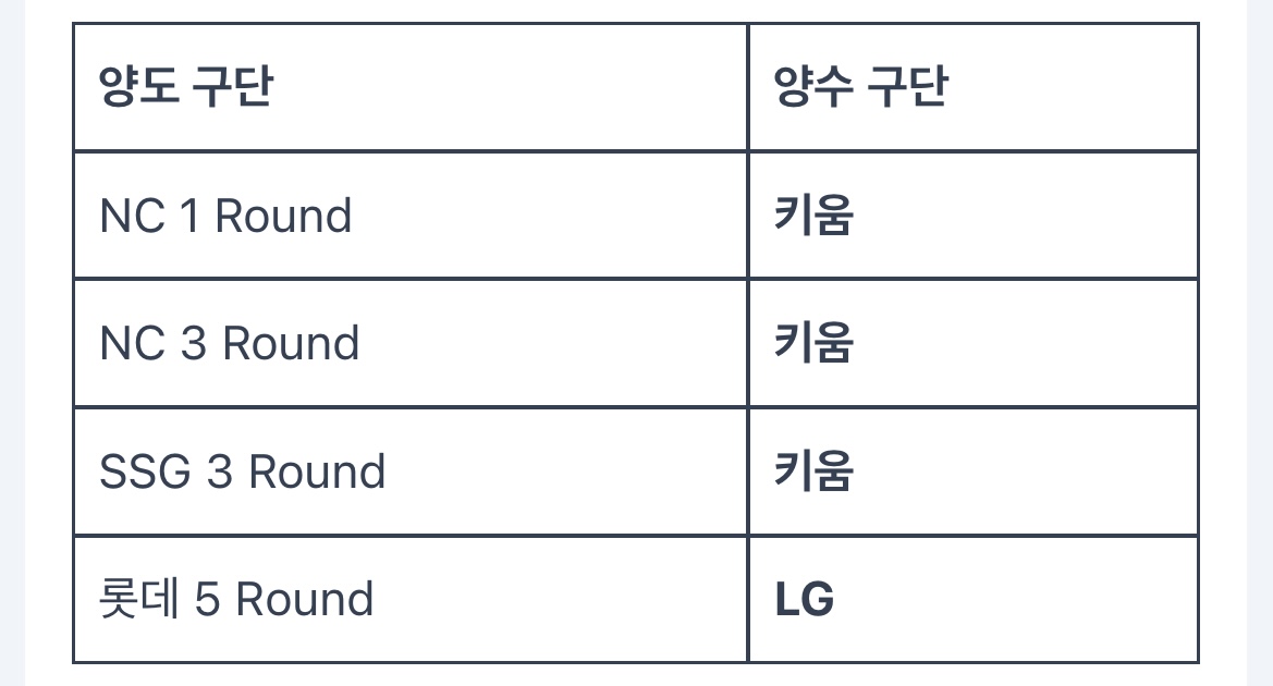– LG 진해수 ↔ 롯데 2025시즌 신인드래프트 5라운드 지명권