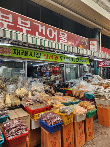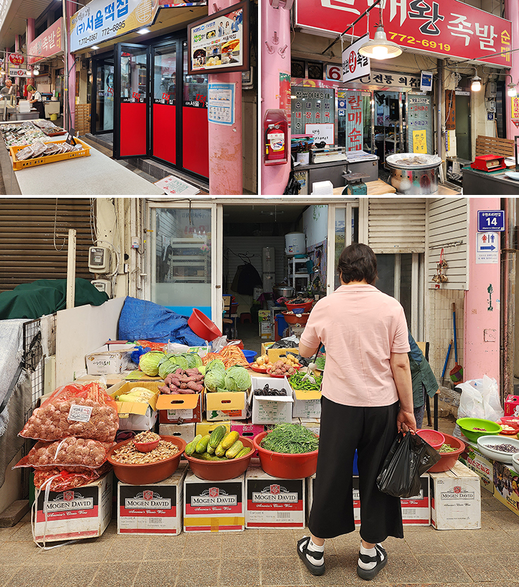 혼재된 부분이 없지 않으나 대체적으로 반찬거리를 판매하는 골목, 수산물을 판매하는 골목, 의류를 판매하는 골목, 빵과 먹거리를 판매하는 골목 등이 잘 정비된 편이다.