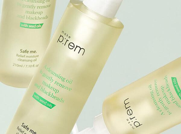 메이크프렘 클렌징 오일은 해바라기씨 오일, 살구씨 오일, 피마자씨 오일, 그리고 호호바씨 오일을 활용해 만든 제품이다. 지성 피부를 감안해 식물성 시드 오일 을 64% 이상 함유해, 가벼운 사용감과 블랙헤드 제 거에 탁월한 기능을 구현했다. 인공 향, 인공 색소 등 피부 주의 성분을 첨가하지 않은 저자극 처방으로, 예 민하고 민감한 피부에도 사용할 수 있는 클렌징 오일 이다. 210ml 용량 제품의 판매가는 18,000원이다.