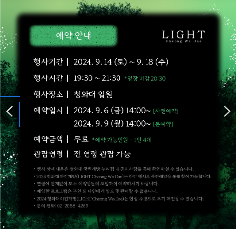 행사 일정 및 예약 정보