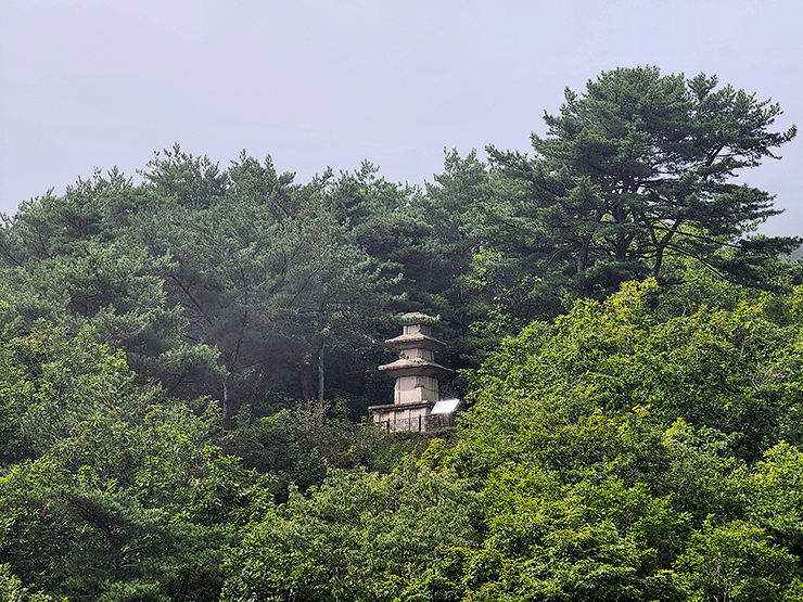 저 앞 산자락에 위치하고 있는 석탑 하나.