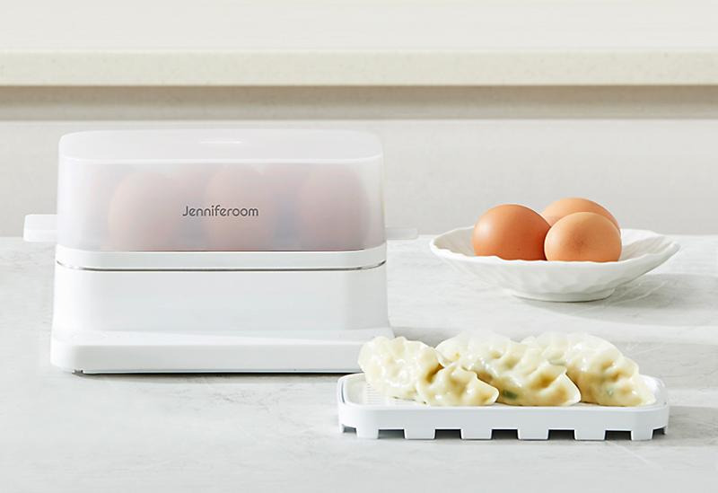 트레이가 2단으로 구성된 덕이다. 본 제품은 스팀을 위로 올리는 대류열 방식으로 조리를 하기에 보다 빠 르게 삶은 계란을 만들 수 있다. 또한 트레이에는 많 은 에어홀을 위치시켜, 스팀이 재료에 닿는 면적을 효 율적으로 넓혔다. 가열판은 통주물 스테인리스 304 로 만들었다. 본 제품의 공식몰 판매가는 39,800원이 다.