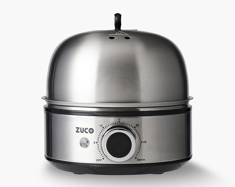 주코 계란찜기는 최고급 스테인리스 SUS304를 활 용한 프리미엄 올 스테인리스 디자인의 제품이다. 본 품과 함께 제공되는 계량컵을 사용해서 열판에 물을 부은 후에, 트레이에 계란을 올리고 뚜껑만 닫으면 된 다. 누구나 사용할 수 있는 직관적인 다이얼 조작계를 가지고 있으며, 다이얼을 돌려 최장 30분까지 조리 시간을 설정할 수 있다. 조리가 끝나면 알람 소리와 함께 작동이 중지된다. 본 제품의 공식몰 판매가는 35,800원이다.
