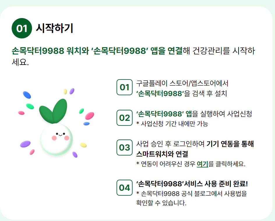 - Q. 신청자격 및 절차 서울시민이라면 누구나 참여 가능하고, 손목닥터 9988 홈페이지를 통해 가입 및 신청할 수 있습니다.