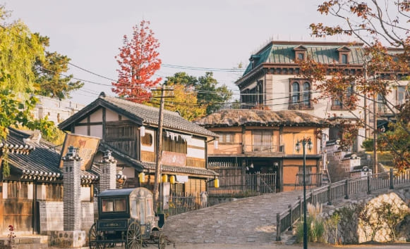 개화기 독립운동가들의 이야기를 로맨스와 함께 풀어낸 드라마 '미스터션샤인'은 많은 사람들의 인생드라마로 손꼽힙니다. 1870년대 조선 말을 배경으로 하는 드라마의 촬영지 선샤인스튜디오는 그 시대의 도시 풍경을 그대로 재현해두어 개화기 분위기를 좋아하는 분들에게는 꼭 가봐야할 여행지로 유명하죠.