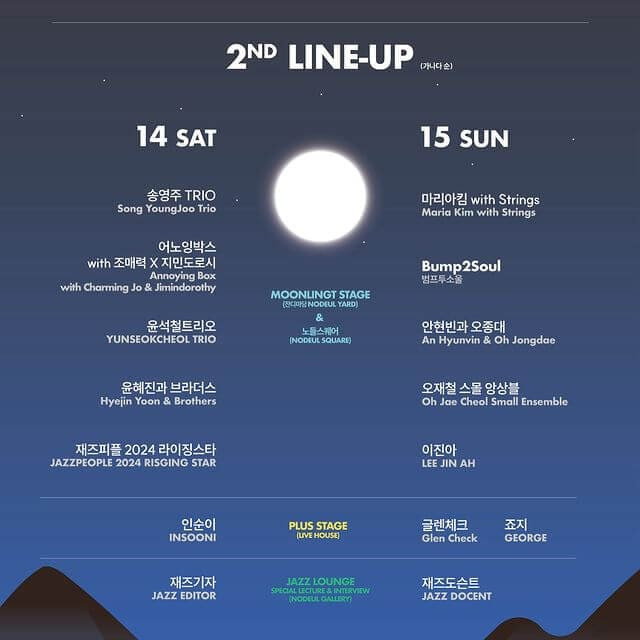 - MOONLIGHT STAGE: 잔디마당에서 열리는 메인 공연